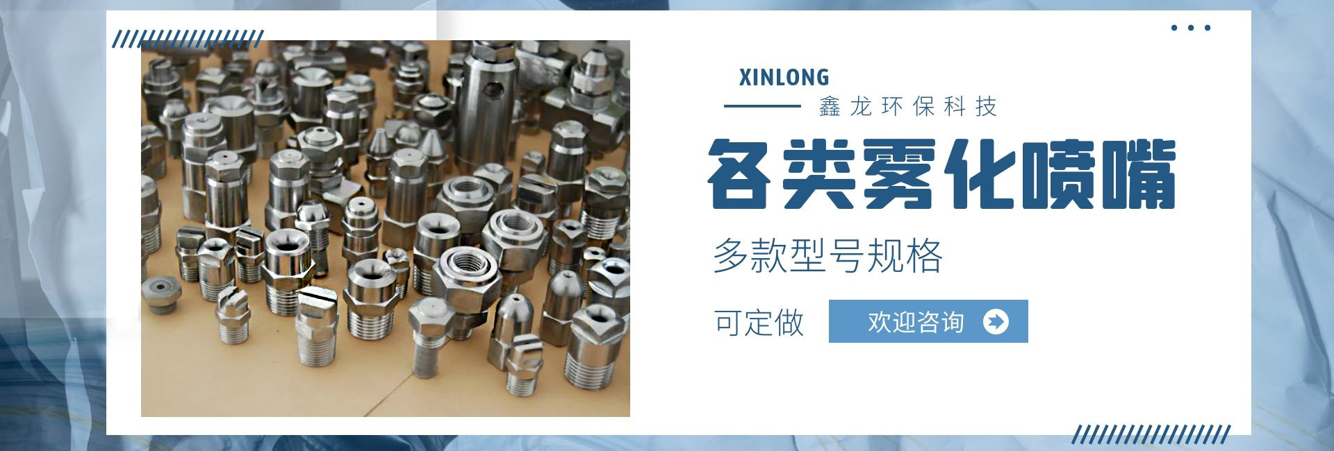 深圳市鑫龍環(huán)保科技有限公司是專業(yè)從事各類噴嘴研制和開發(fā)的廠家,技術(shù)力量雄厚,生產(chǎn)工藝先進,檢測手段齊全,管理制度嚴格,產(chǎn)品質(zhì)量穩(wěn)定可靠。產(chǎn)品種類多達上萬種,適用于涂裝處理、環(huán)保、線路板、電子電力、汽車制造、家電制造、造紙業(yè)、紡織業(yè)、防火等行業(yè);我公司產(chǎn)品不僅為國內(nèi)多家大中型企事業(yè)選用,還配套外銷日本、美國、東南亞等國家和地區(qū)。我們具有本行業(yè)前衛(wèi)的噴嘴制造設(shè)施,在我們裝備完善的噴嘴實驗室,可以進行各種類型噴嘴的測試研究,以優(yōu)化噴霧系統(tǒng)的性能。我公司提供專業(yè)技術(shù)、應(yīng)用和售后服務(wù),幫助用戶選擇適合的噴嘴,并保持噴嘴在良好條件下運行。從噴嘴選擇指導(dǎo),到量身定制的設(shè)計,直到噴霧顆粒的測試分析,在每個訂單中都包含了我們好的技術(shù)支持,用戶反映:我司顯著的特點是銷售工程師在幫助用戶降低成本、減少加工和維修時間,降低工業(yè)用水和化學(xué)劑消耗等方面有著非常豐富的經(jīng)驗,使用戶可以更經(jīng)濟、更有效的解決實際問題!我們繼續(xù)堅持專業(yè)是金的理念,制造好的噴嘴是我們永遠的追求和努力!