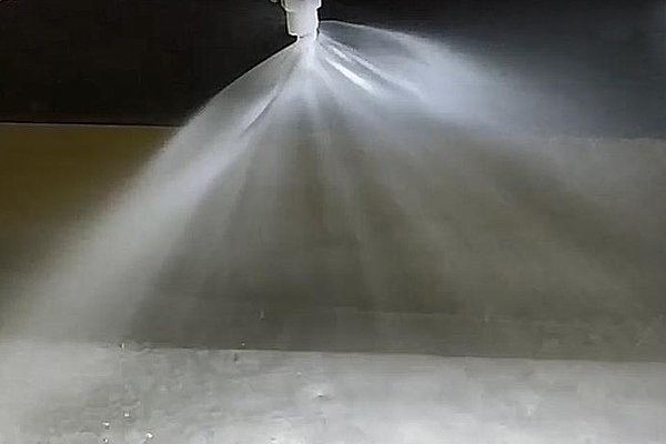 2021.6.3 礦山石料破碎除塵噴霧工程,深圳市鑫龍環(huán)保科技有限公司噴霧除塵(超聲霧化除塵)是最簡便和最經(jīng)濟的除塵方式,并且除塵效果良好。噴霧除塵是將水霧化處理成許多高速運動的密集細小水滴,是借助壓縮空氣沖擊共振腔產(chǎn)生的超聲波,利用超聲波將水霧處理成濃密的微細霧滴,這些微細霧滴在相對密閉的空間內(nèi)可以捕獲、凝聚微細粉塵,使得微細粉塵的黏性、濕度和比重顯著增加,進而使得粉塵迅速沉降下來,逐漸實現(xiàn)除塵的目的。